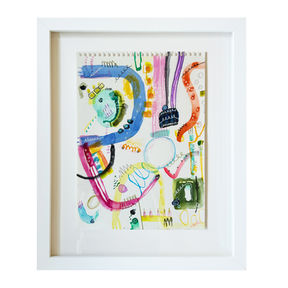 Named after her artist grandmother and her art patron great-grandmother, art is in Caroline Cohenour's blood. Influenced by over a decade and a half living and working in California, she creates her colorful and evocative abstract originals intuitively, often listening to music. Layers of paint, marks, words, numbers, and symbols give the viewer entrée to find something new in each look with unexpected titles offering additional dimension. A mixed media and wholly analog artist, Caroline paints and collages with watercolor, ink, pencil, charcoal, and acrylic atop paper, wood, and canvas.