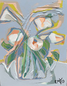 "Stand up close and see smudges of color blur together. A loud kitchen full of kids. Art supplies spread all over my studio. But stand back, and the clashes of chaos - the mundane and messy details - reveal the harmony of a meaningful story. My work is where this beautiful mess lives, where I capture little moments of joy. From life with my big family, my travels, books I'm reading, or the flowers on my counter, my paintings reflect memories; these are memories that I share with you. I've been painting through all the seasons of motherhood - little kids to big kids. Thank you for letting me share my life and work with you."